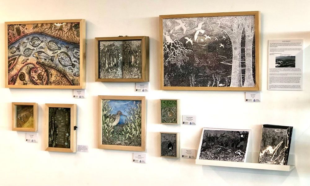 Since the end of September I’ve had some artwork up on an art wall in the Discovery Centre at Rye Harbour Nature Reserve. These include artworks I created for my Pett Level Project along with a few others.